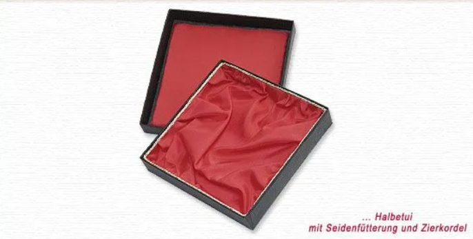Bei den Halbetuis wird die Kartonage innen zusätzlich hochwertig veredelt. Hierfür dienen zum Beispiel bedruckte geschnürte Einlagen, gestanzte Einlagen sowie Seideneinlagen oder Seideneinsätze. Alles nach Ihren Angaben und Wünschen. Der Einsatz kann auch aus beflocktem oder klarem Kunststoff tiefgezogen werden. Als Deckel verwendet man einen Vollpapp- oder Klarsichtdeckel.